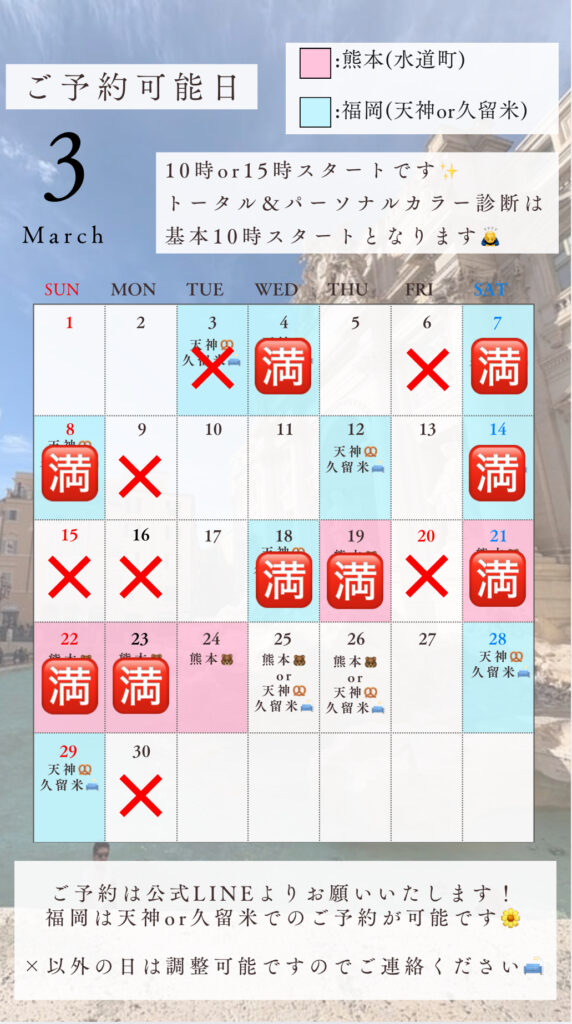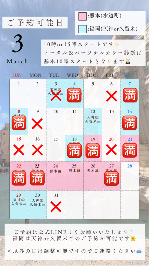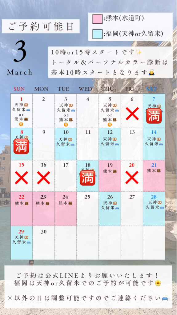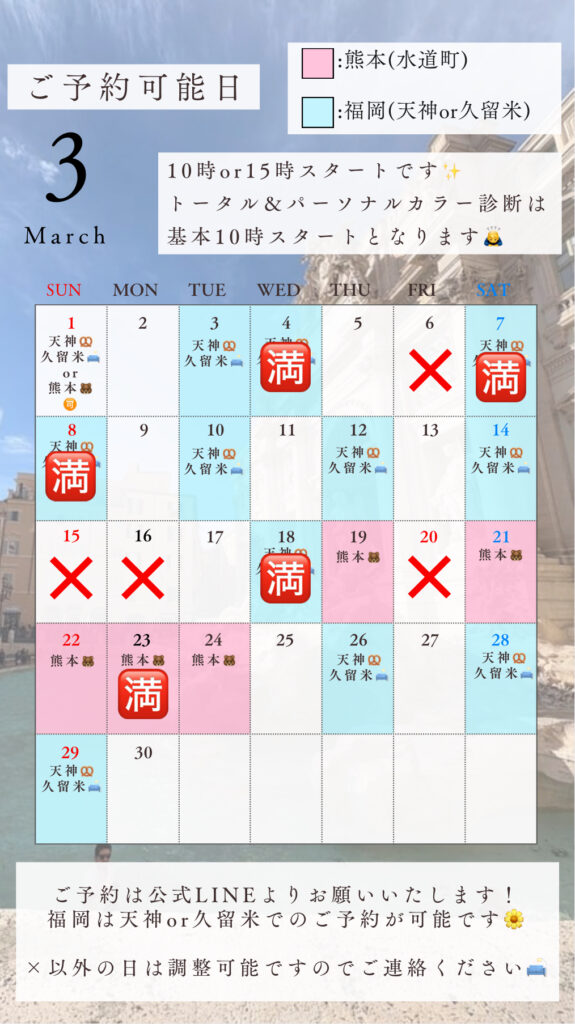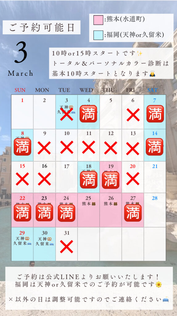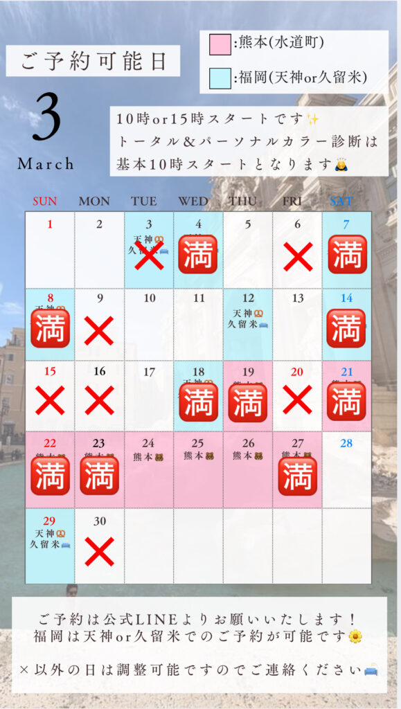 福岡を拠点に、熊本でも出張診断やショッピング同行などを行っております✨