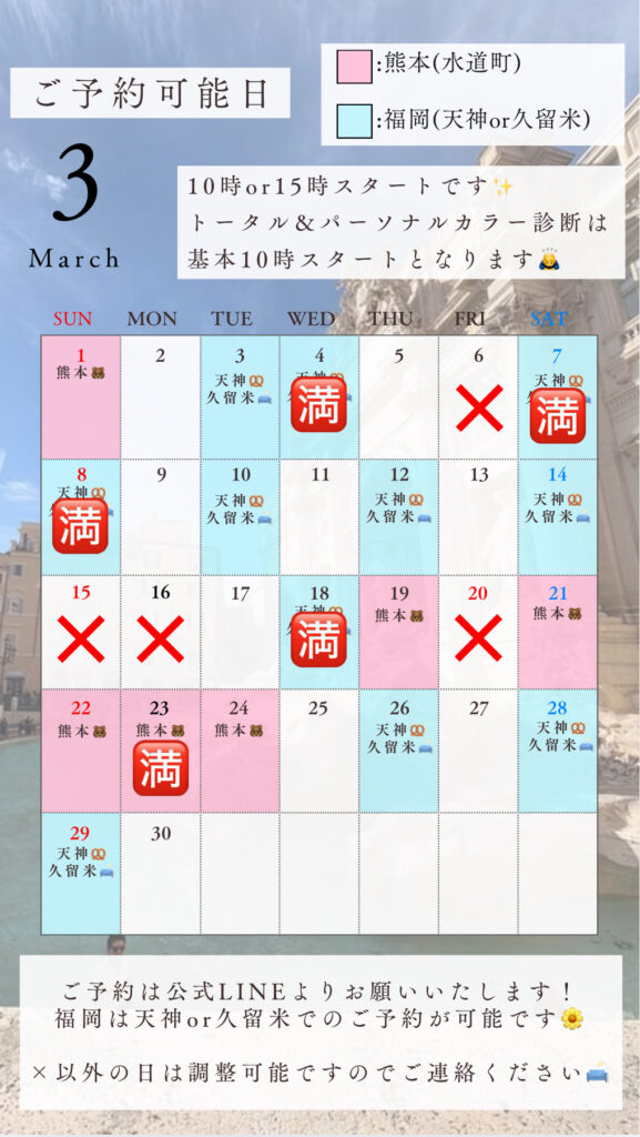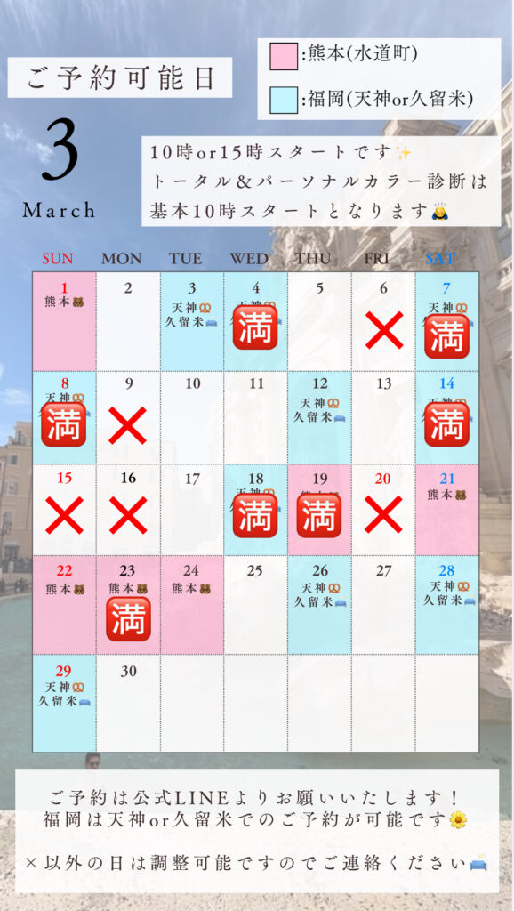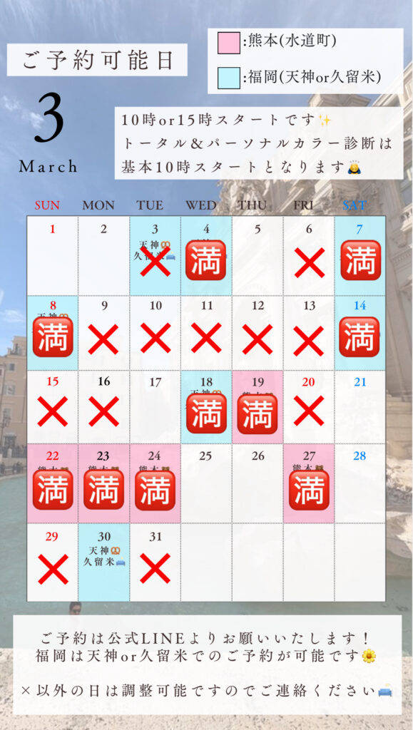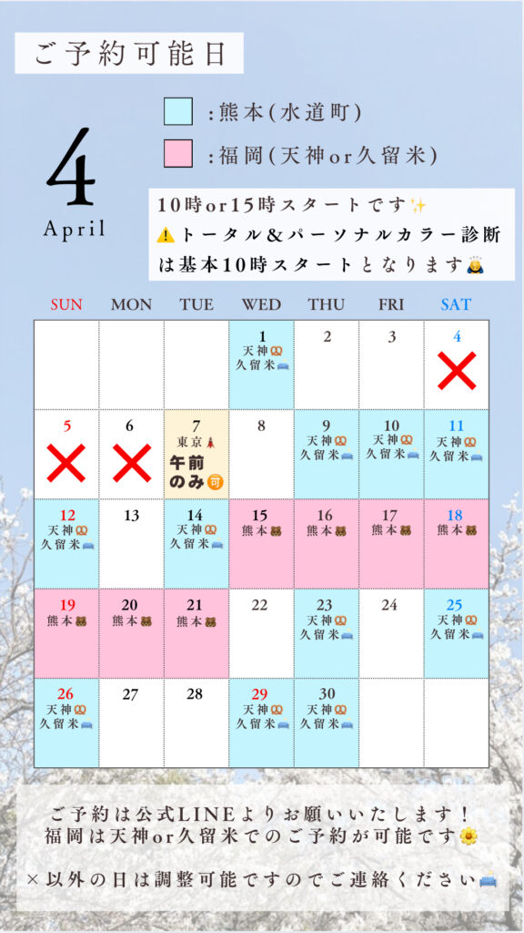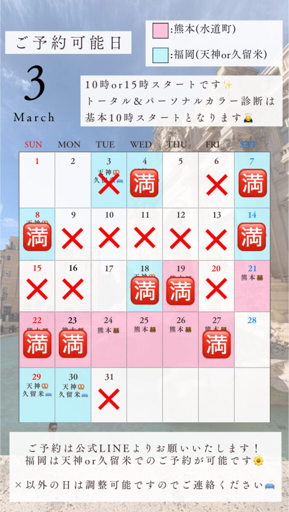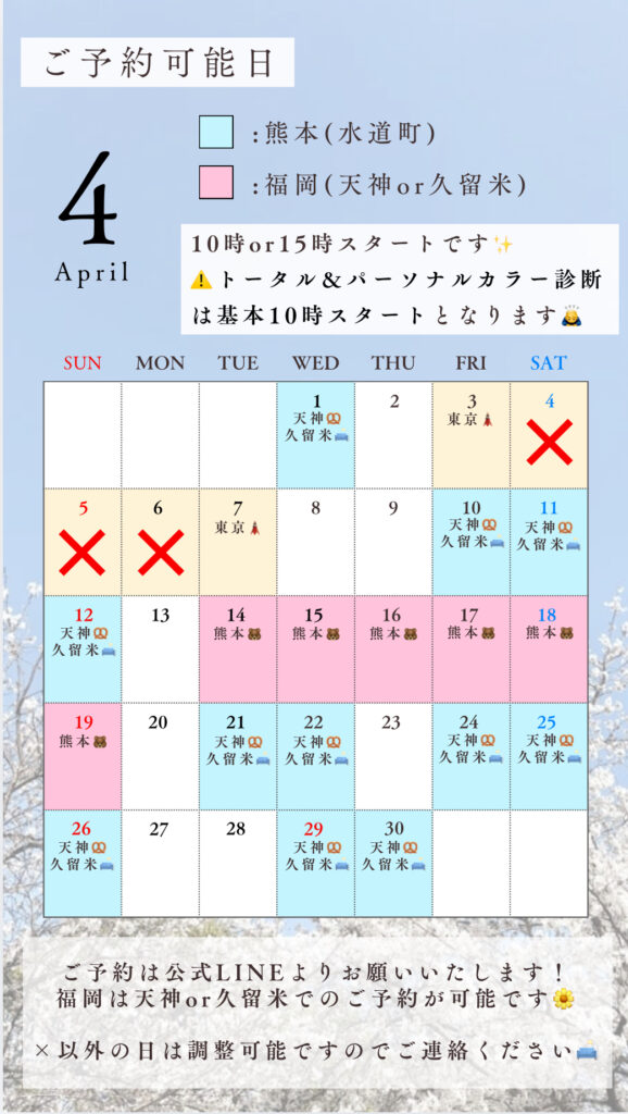 福岡を拠点に、熊本でも出張診断やショッピング同行などを行っております✨
